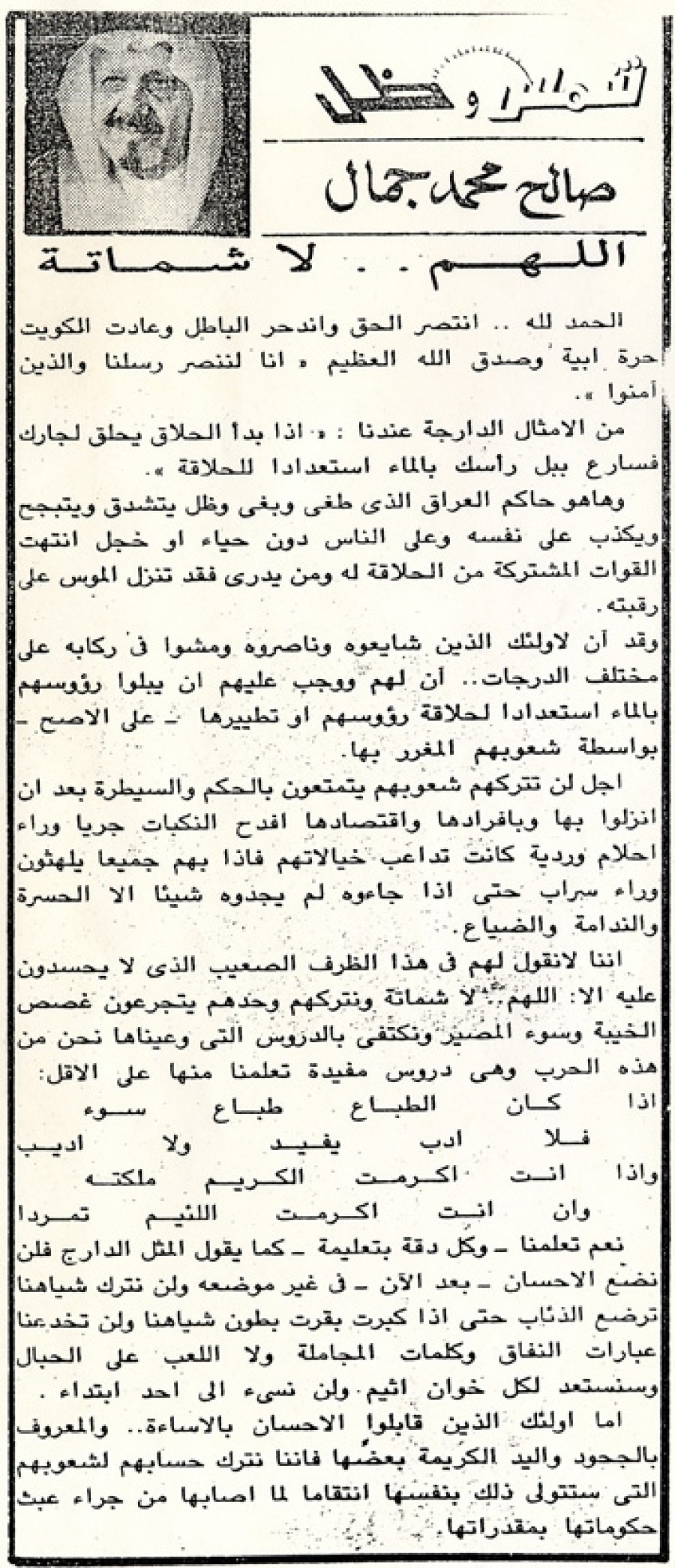 الحمد لله.. انتصر الحق واندحر الباطل وعادت الكويت حرة أبية "وصدق الله العظيم" «إنا لننصر رسلنا والذين آمنوا».