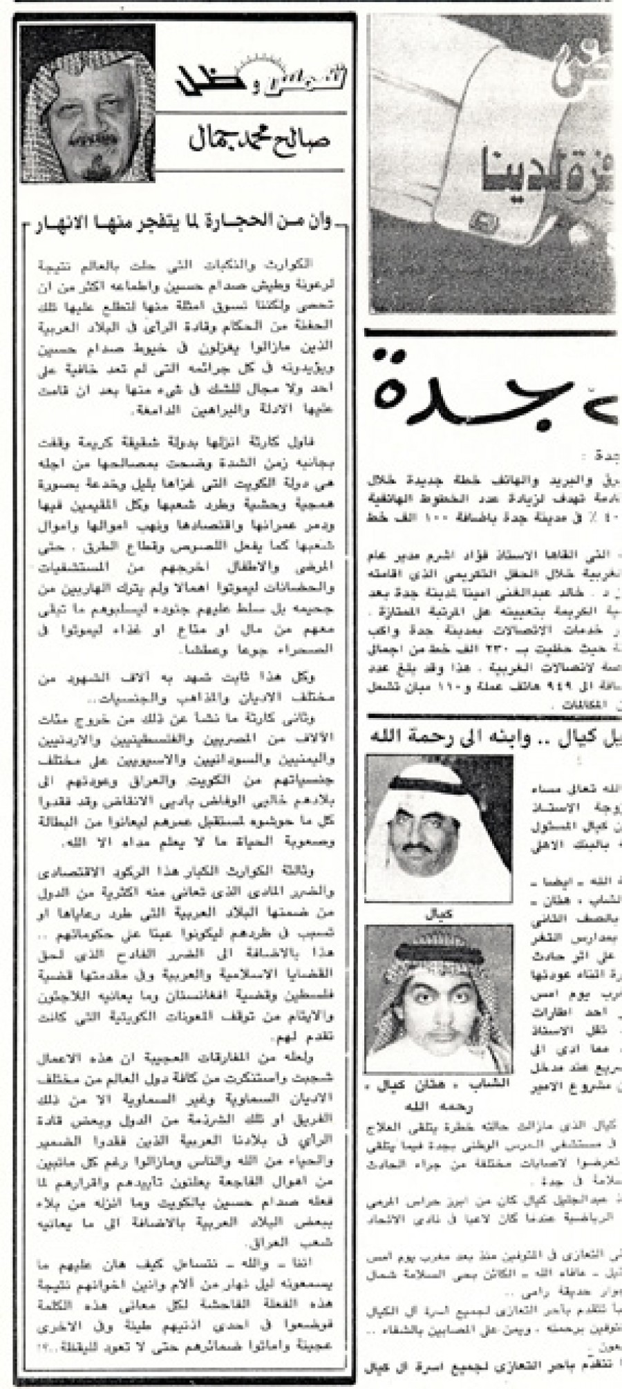 الكوارث والنكبات التي حلت بالعالم نتيجة لرعونة وطيش صدام حسين وأطماعه أكثر من أن تحصي ولكننا نسوق أمثلة منها لتطلع عليها تلك الحفنة من الحكام وقادة الرأي في البلاد العربية الذين ما زالوا يغزلون في خيوط صدام حسين ويؤيدونه في كل جرائمه التي لم تعد خافية على أحد ولا مجال للشك في شئ منها بعد أن قامت عليها الأدلة والبراهين الدامغة.