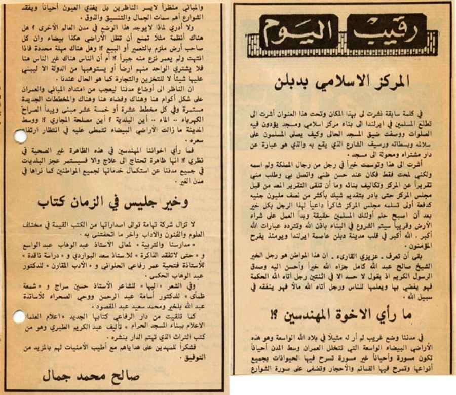 أشرت إلى هذا وتوسمت خيراً في رجل من رجال المملكة ولم اسمه ولكني لمحت فقط لكان عند حسن ظني واتصل بي وطلب مني تقريراً عن المركز وتكاليف بنائه وما أن تلقى التقرير المعد من قبل مجلس المركز حتى بادر بتقديم شيك بأكثر من نصف مليون جنيه كدفعة أولى تسلمه مجلس المركز شاكراً داعياً لهذا الرجل بكل خير بعد أن أصبح حلم أولئك المسلمين حقيقة وبدأ العمل على شراء الأرض وقريباً سيتم الشروع في البناء بإذن الله وتتردد عبارات الله أكبر، الله أكبر في قلب مدينة دبلن عاصمة أيرلندا ويومئذ يفرح المؤمنون.