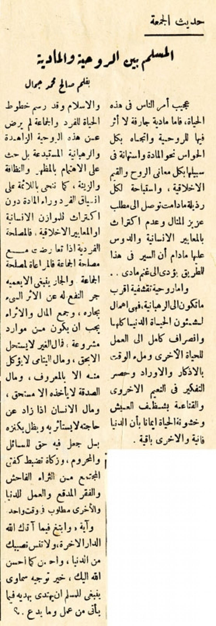 حديث الجمعة - المسلم بين الروحية والمادية