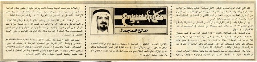 بيد أن عبارة جاءت في آخر القرار تشير إلى أنه من المحتمل أن تستمر الدراسة في العام القادم 1407 هـ شهر رمضان مع تخفيف في الحصص ثم تبدأ الاختبارات في شوال.