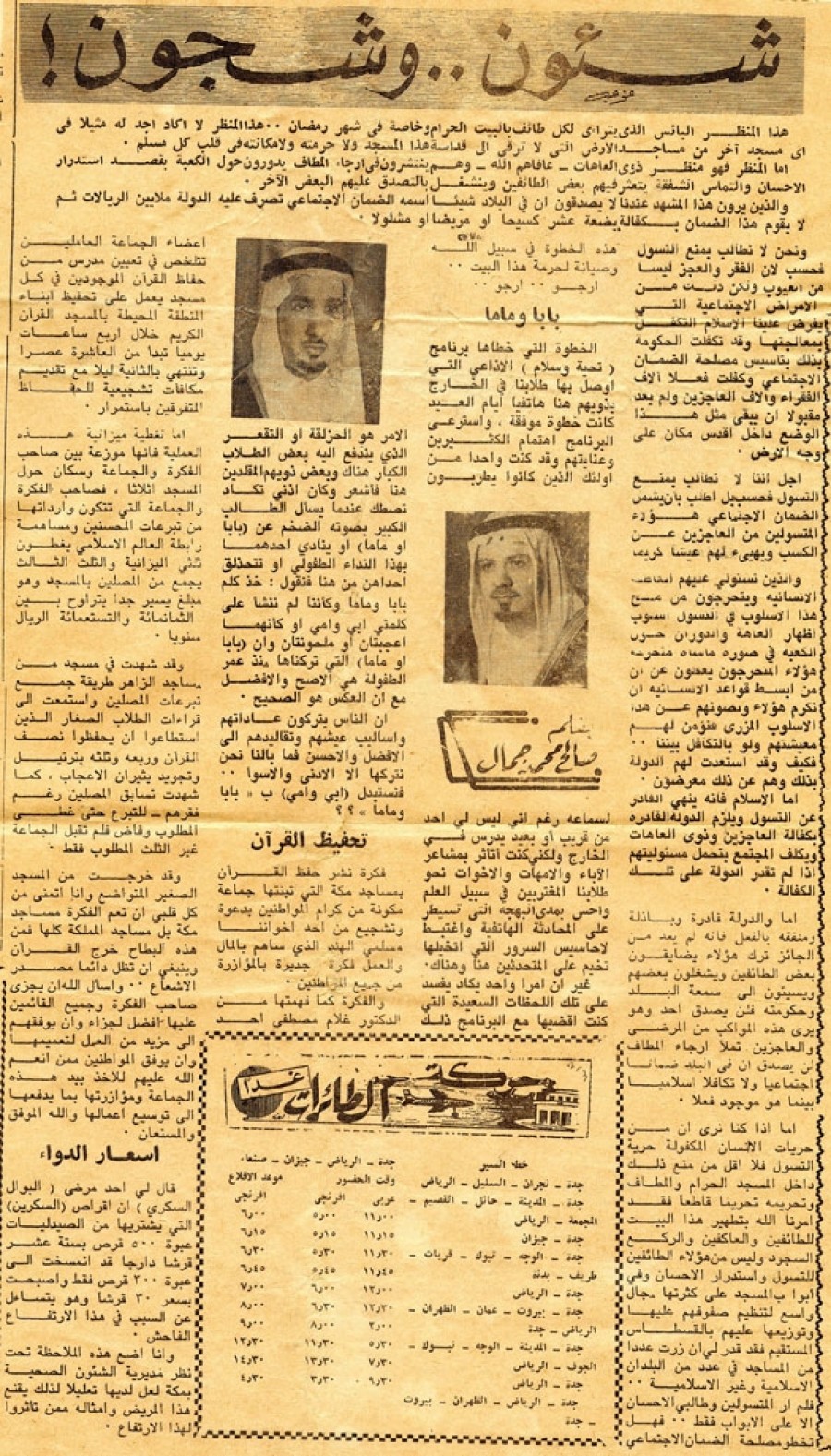 ونحن لا نطالب بمنع التسول فحسب لأن الفقر والعجز ليسا من العيوب ولكن ذلك من الأمراض الاجتماعية التي يفرض علينا الإسلام التكفل بمعالجتها وقد تكفلت الحكومة بذلك بتأسيس مصلحة الضمان الاجتماعي وكفلت فعلاً آلاف الفقراء وآلاف العاجزين ولم يعد مقبولاً أن يبقى مثل هذا الوضع داخل أقدس مكان على وجه الأرض.