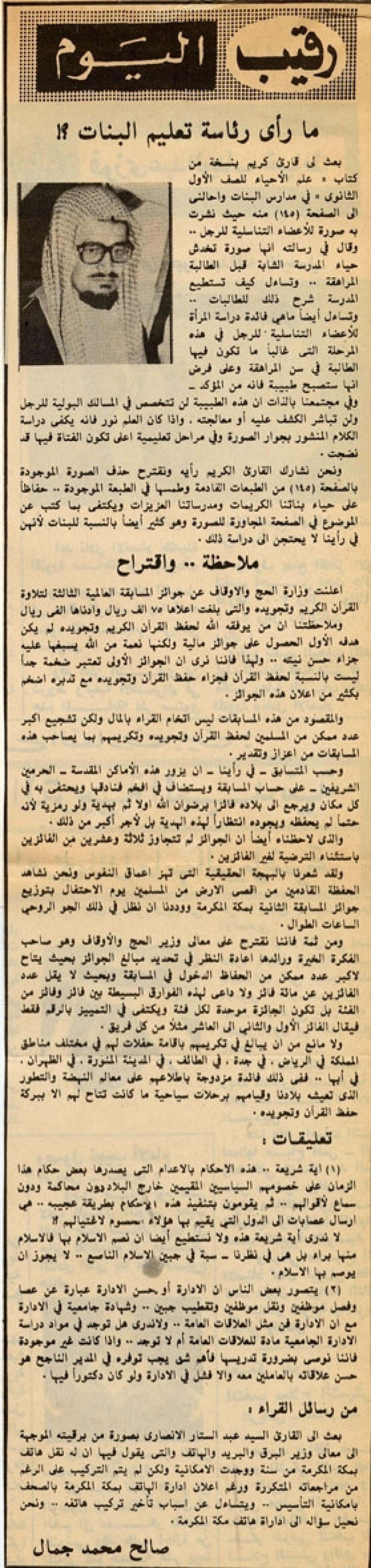 ونحن نشارك القارئ الكريم رأيه ونقترح حذف الصورة الموجودة بالصفحة (145) من الطبعات القادمة وطمسها في الطبعة الموجودة – حفاظا على حياء بناتنا الكريمات ومدرساتنا العزيزات ويكتفي بما كتب عن الموضوع في الصفحة المجاورة للصورة وهو كثير أيضا بالنسبة للبنات لأنهن في رأينا لا يحتجن إلى دراسة ذلك.