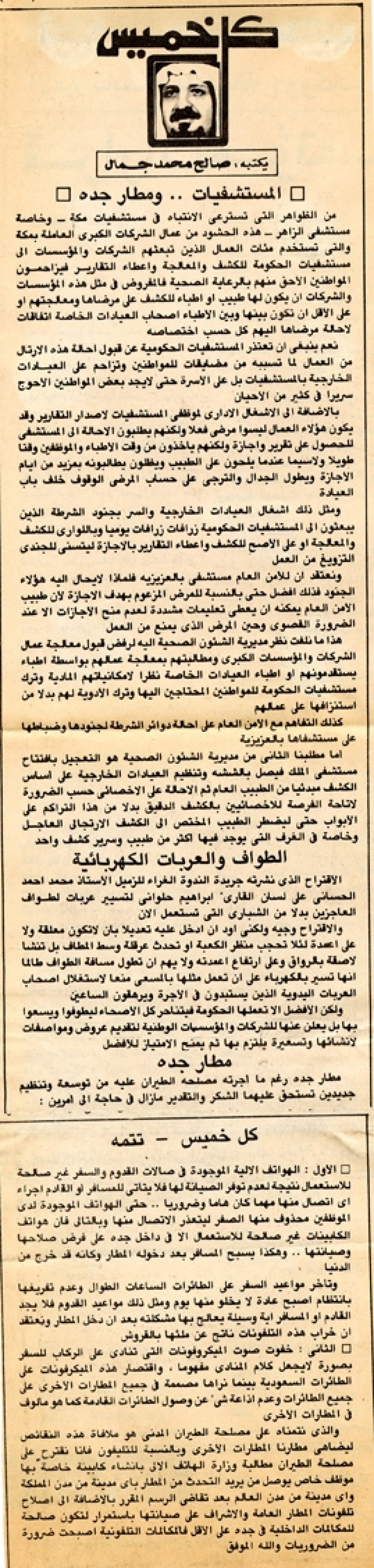مطار جدة رغم ما أجرته مصلحة الطيران عليه من توسعة وتنظيم جديدين تستحق عليهما الشكر والتقدير ما زال في حاجة إلى أمرين: