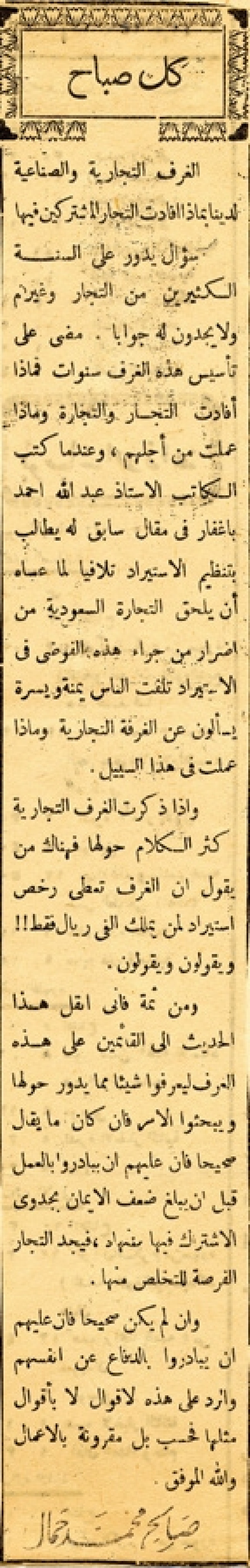 وإذا ذكرت الغرف التجارية كثر الكلام حولها فهناك من يقول أن الغرف تعطي رخص استيراد لمن يملك ألفى ريال فقط!! ويقولون ويقولون.