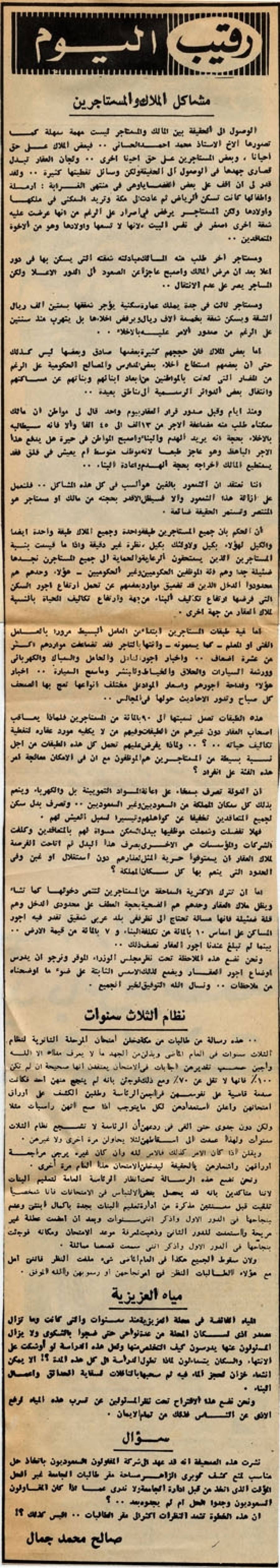 ونحن نضع هذه الملاحظة تحت نظر مجلس الوزراء الموقر ونرجو أن يدرس أوضاع أجور العقار ويضع لذلك الأسس الثابتة على ضوء ما أوضحناه من ملاحظات.. ونسأل الله التوفيق لخير الجميع.