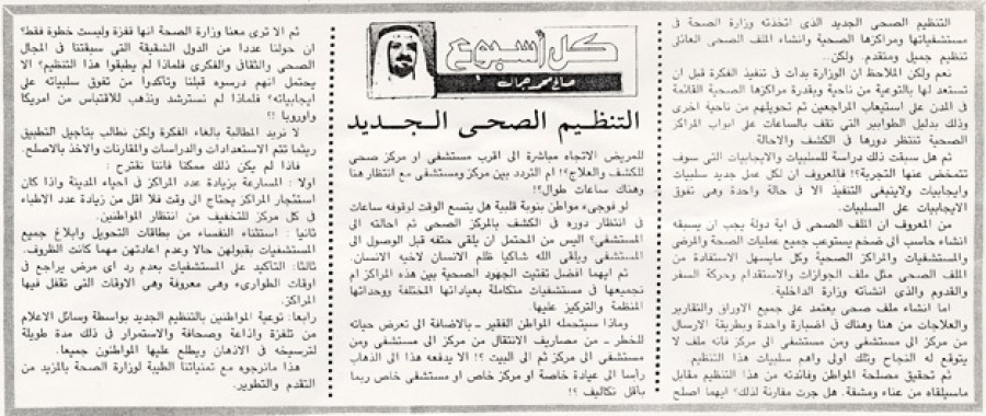 التنظيم الصحي الجديد الذي اتخذته وزارة الصحة في مستشفياتها ومراكزها الصحية وإنشاء الملف الصحي العائلي تنظيم جميل ومتقدم. ولكن..