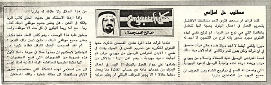 كلما قرأت أو سمعت فتوى لأحد مشايخنا الأفاضل بتحريم العمل في أعمال البنوك بحجة أنها تتعامل بالفائدة التي هي نوع من الربا، لم ترتح نفسي لهذه الفتوى مجرد شعور بأنه نوع من التحجير لا أجد له مبررا ولكني أيضا لا أجد دليلا ضده حتى قرأت ما سبق لي أن قرأته ولكن بدون تدبر وكأنني أقرأه لأول مرة، تلك قصة اقتراض الرسول عليه الصلاة والسلام من يهودي مراب ورهنه درعه عنده وإجابة الرسول لدعوة اليهودية التي وضعت له السم في ذراريح الشاه ومن المعروف أن جميع اليهود من المتعاملين بالربا.