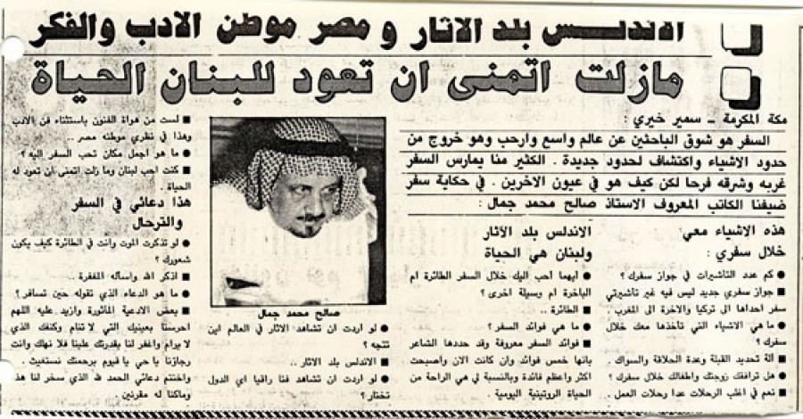 السفر هو شوق الباحثين عن عالم واسع وأرحب وهو خروج من حدود الأشياء واكتشاف لحدود جديدة. الكثير منا يمارس السفر غربه وشرقه فرحاً لكن كيف هو في عيون الآخرين. في حكاية سفر ضيفنا الكاتب المعروف الأستاذ صالح محمد جمال.