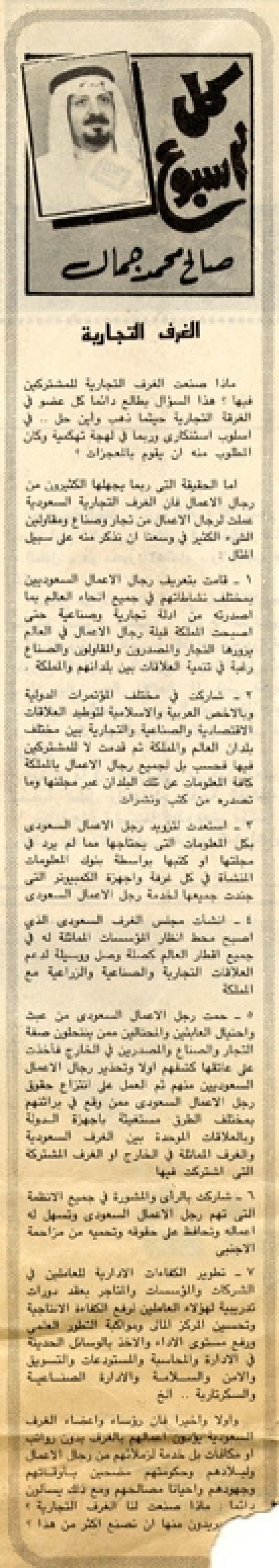 أما الحقيقة التي ربما يجهلها الكثيرون من رجال الأعمال فإن الغرف التجارية السعودية عملت لرجال الأعمال من تجار وصناع ومقاولين الشيء الكثير في وسعنا أن نذكر منه على سبيل المثال: