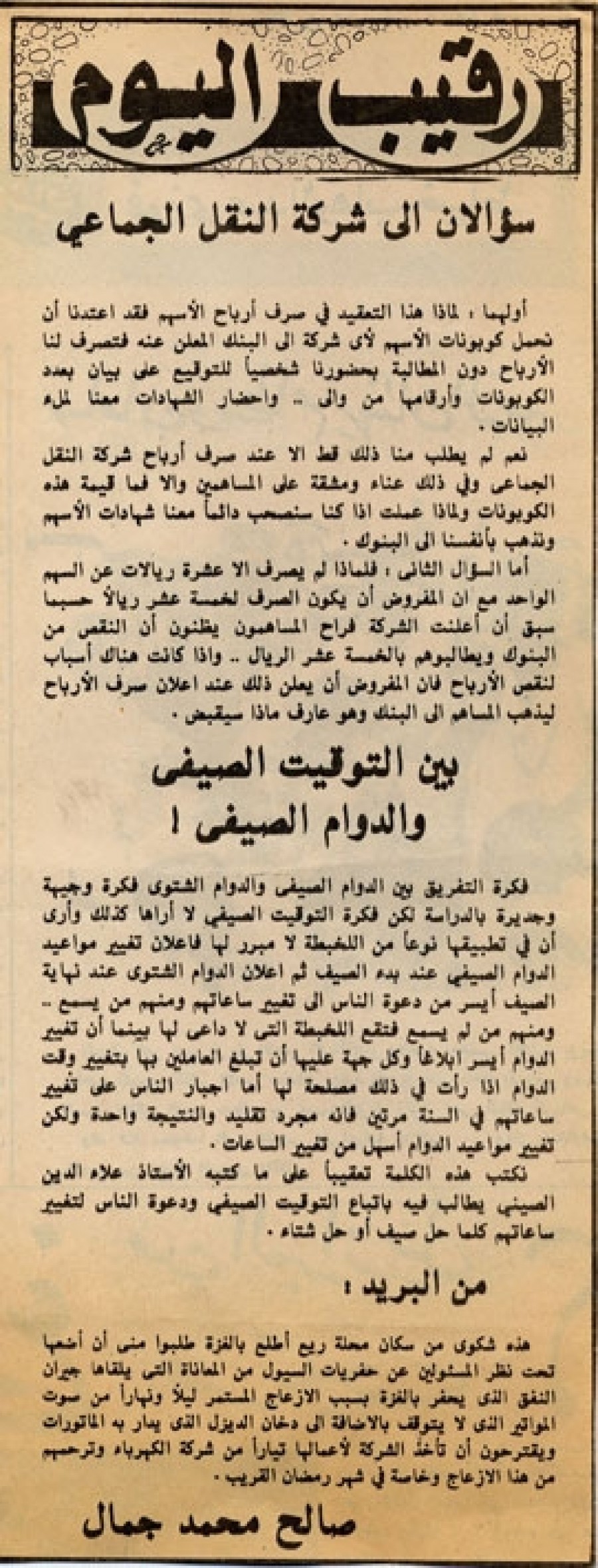 نكتب هذه الكلمة تعقيباً على ما كتبه الأستاذ علاء الدين الصيني يطالب فيه باتباع التوقيت الصيفي ودعوة الناس لتغيير ساعاتهم كلما حل صيف أو حل شتاء.