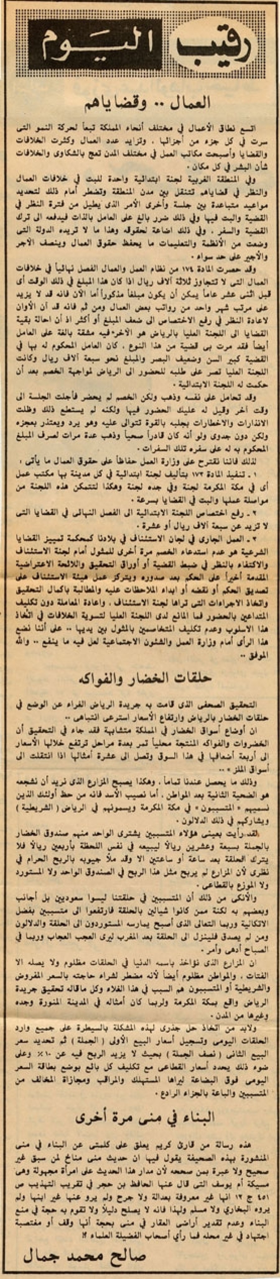 التحقيق الصحفي الذي قامت به جريدة الرياض الغراء عن الوضع في حلقات الخضار بالرياض وارتفاع الأسعار استرعى انتباهي..