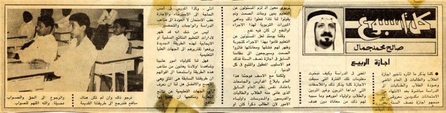 وقلنا يومئذ لعل المسئولين عن التعليم قاموا بهذا الإجراء كتجربة وظهر لهم فشلها ومعاناتها فآثروا الصمت وسيرجعون إلى نظامنا السابق في أجازة نصف السنة فذلك هو الأسلوب المعقول والمتبع في كل الدنيا.