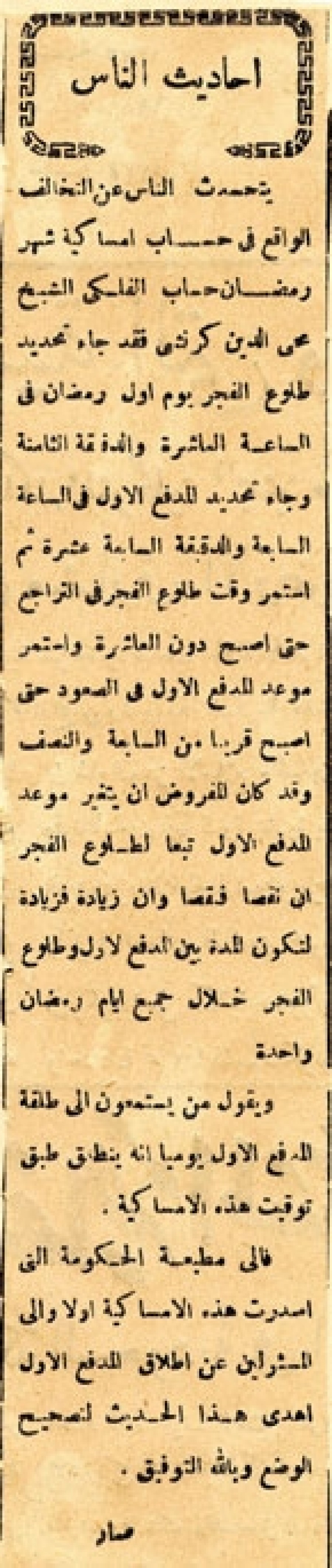 فإلى مطبعة الحكومة التي أصدرت هذه الإمساكية أولاً وإلى المسئولين عن إطلاق المدفع الأول أهدي هذا الحديث لتصحيح الوضع وبالله التوفيق.