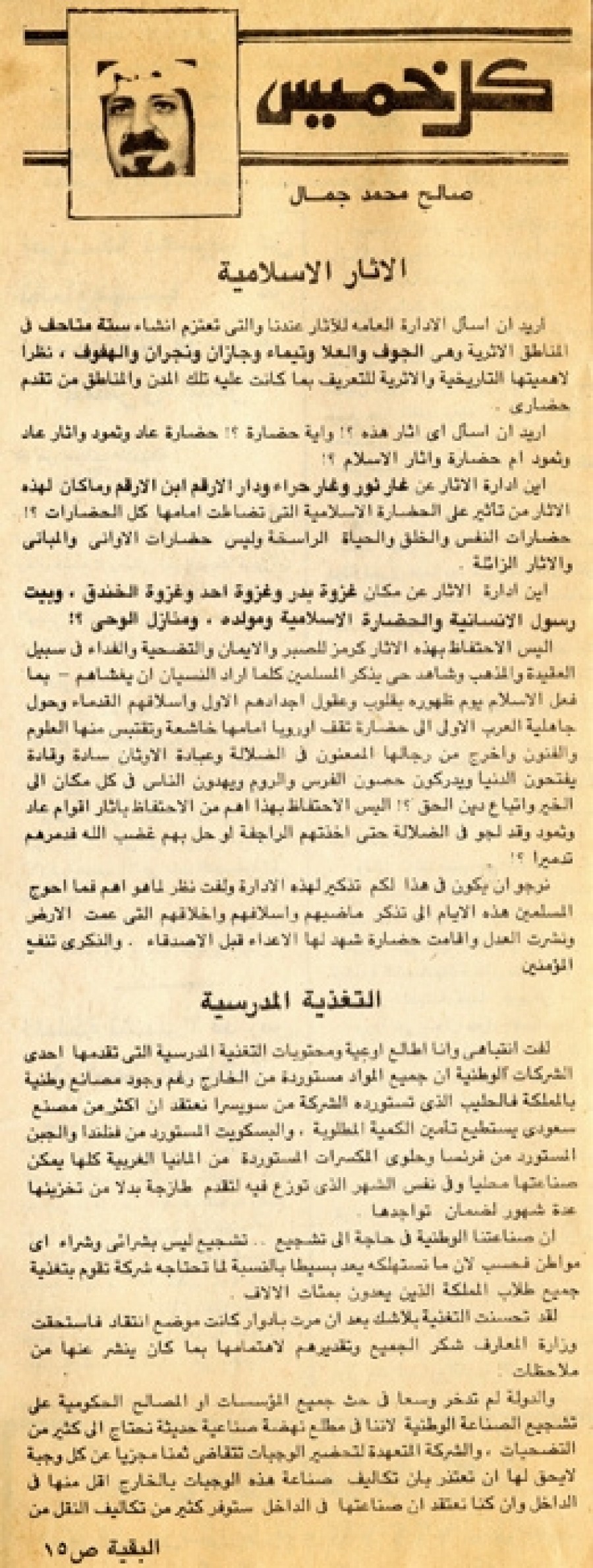 أليس الاحتفاظ بهذه الآثار كرمز للصبر والإيمان والتضحية والفداء في سبيل العقيدة والمذهب وشاهد حى يذكر المسلمين كلما أراد النسيان أن يغشاهم – بما فعل الإسلام يوم ظهوره بقلوب وعقول أجدادهم الأول وأسلافهم القدماء وحول جاهلية العرب الأولى إلى حضارة تقف أوروبا أمامها خاشعة وتقتبس منها العلوم والفنون وإخراج من رجالها الممعنون في الضلالة وعبادة الأوثان سادة وقادة يفتحون الدنيا ويدركون حصون الفرس والروم ويهدون الناس في كل مكان إلى الخير واتباع دين الحق؟! أليس الاحتفاظ بهذا أهم من الاحتفاظ بآثار أقوام عاد وثمود وقد لجو في الضلالة حتى أخذتهم الراجفة أو حل بهم غضب الله فدمرهم تدميراً؟!