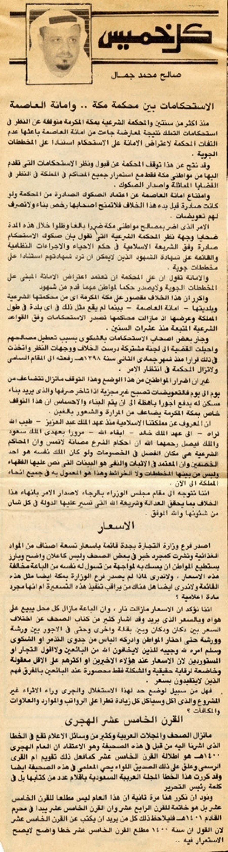 ما تزال الصحف والمجلات العربية وكثير من وسائل الإعلام تقع في الخطأ الذي أشرنا إليه من قبل في هذه الصحيفة وهو الاعتقاد أن العام الهجري 1400ﻫ هو إطلالة القرن الخامس عشر كما فعل ذلك تقويم أم القرى الرسمي وعلق على ذلك الصديق اللواء يحيى المعلمي في هذه الصحيفة أيضاً وقد كررت هذا الخطأ المجلة العربية السعودية بأقلام عدد من كتابها بل في كلمة رئيس التحرير.