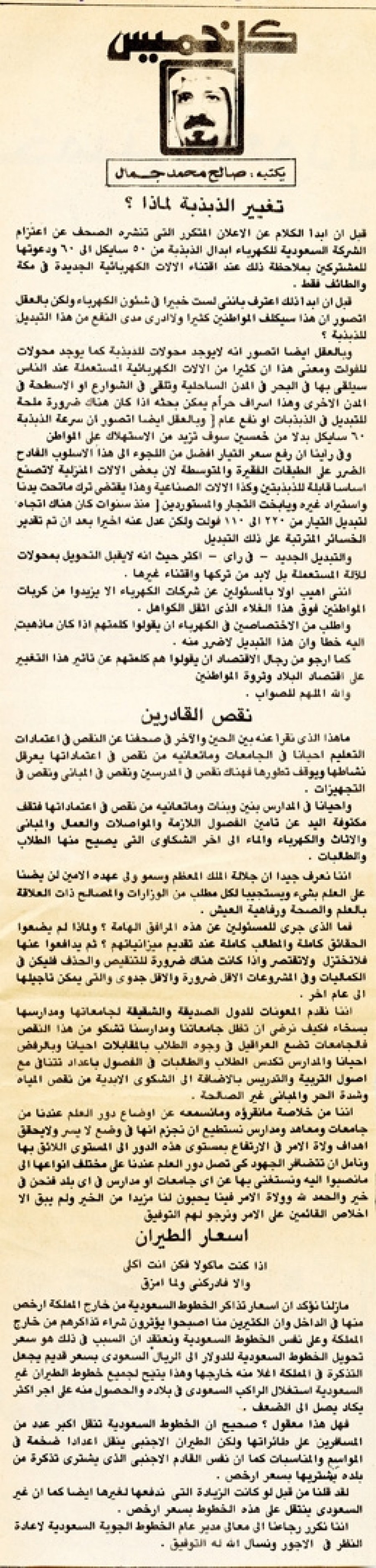 إننا نكرر رجاءنا إلى معالي مدير عام الخطوط الجوية السعودية لإعادة النظر في الأجور ونسأل الله له التوفيق.
